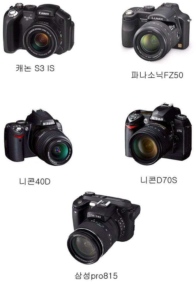 캐논 파워샷 S3 IS, 파나소닉 루믹스 DMC FZ50, 삼성 PRO 815 는 렌즈 일체형 디지탈 카메라(보통 이 제품들을 약간 하이엔드 카메라라고 함...-_-;;)이구욤.