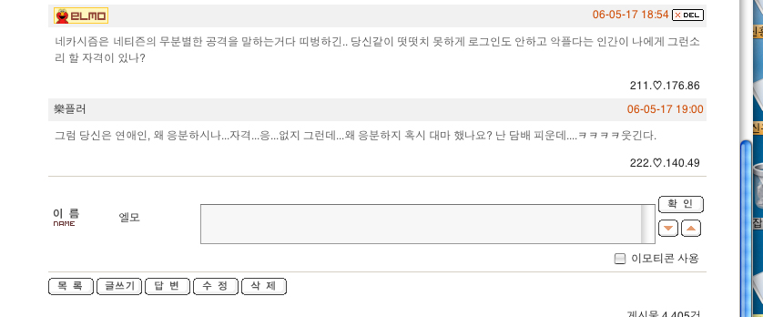 마자. 알지도 못하는 사람이 자기 이름도 못밝히는 주제에 떠드는 꼴이라니.. 눈뜨고는 못봐주져.. 엘모님,,, 쌩까세여~ 별에별 사람 다 있음..