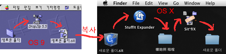 추가로 OS X에서 StuffIt 7.x~8.x를 이용해 .sit압축파일을 만들어 클래식 맥에 보낼 때,