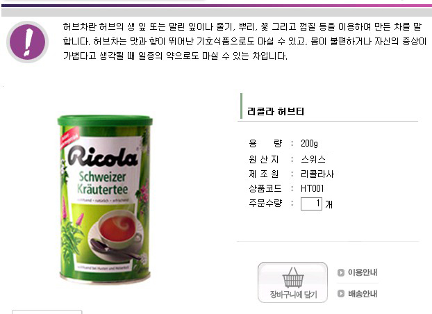 백화점 식품 매장에 가도 안보이고 허브차만 전문으로 파는 매장에 가야하나~ 아니면 인터넷 주문을 해야하나 하고 말이에요. 리콜라 사이트에 가면 되는지~~ 흐~~ ^^