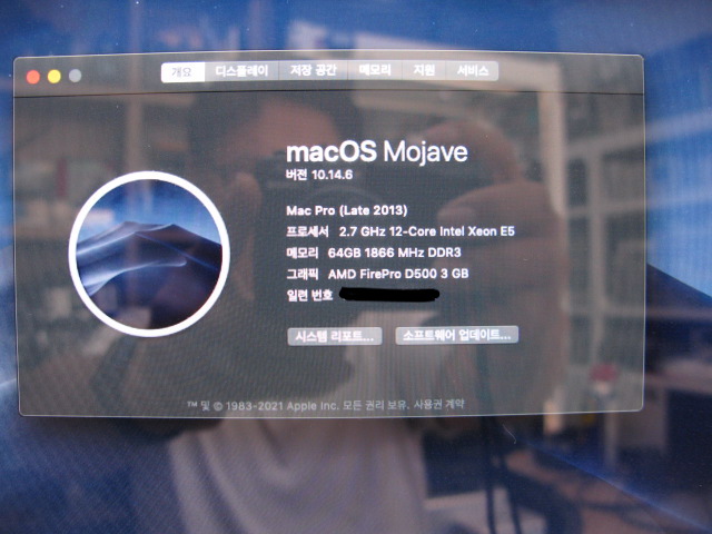 CPU : 맥프로 2.7GHz 12코어(1x2.7GHz 12-Core) Intel Xeon E5