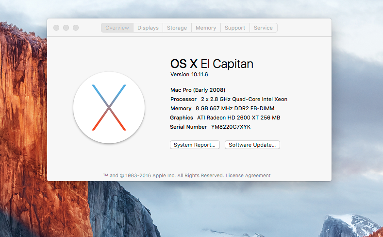 모델 식별자: MacPro3,1 (MacPro3,1은 Mac OS 10.5.1부터 Mac OS 10.11 엘캐피탄까지 설치가능합니다.)