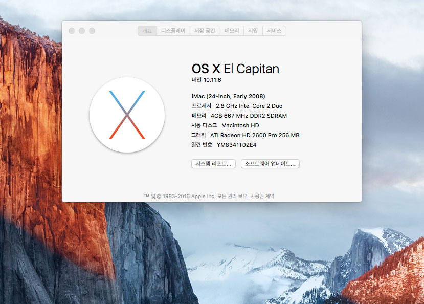 현재 맥 os는 엘캐피탄 설치되어 있으며