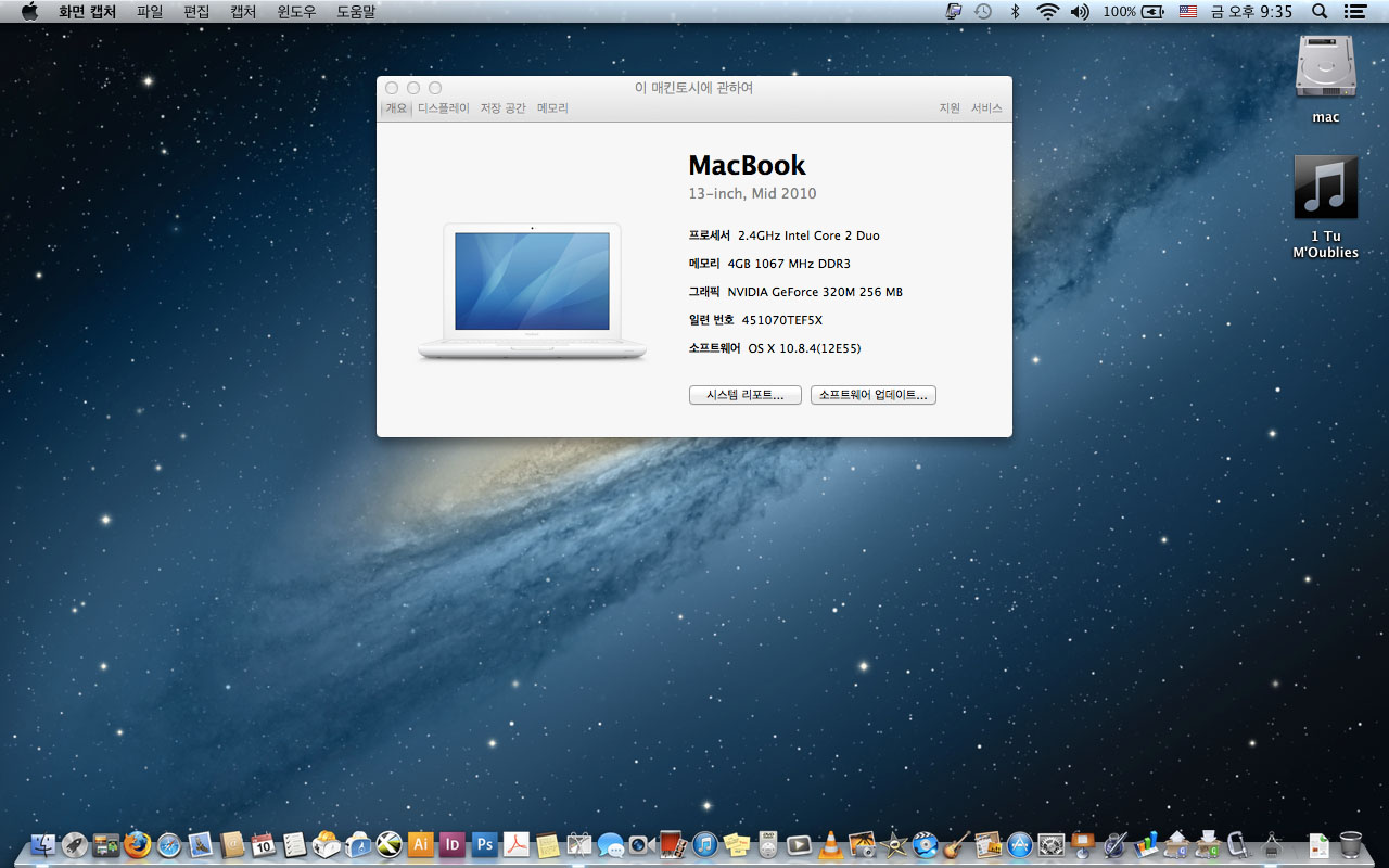 2010년 화이트 맥북 13인치- 맥 디자인프로그램들이 사진처럼
