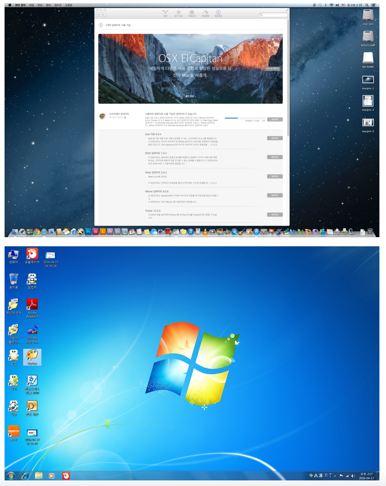 부트캠프로 윈도우즈7 완벽설치했습니다
