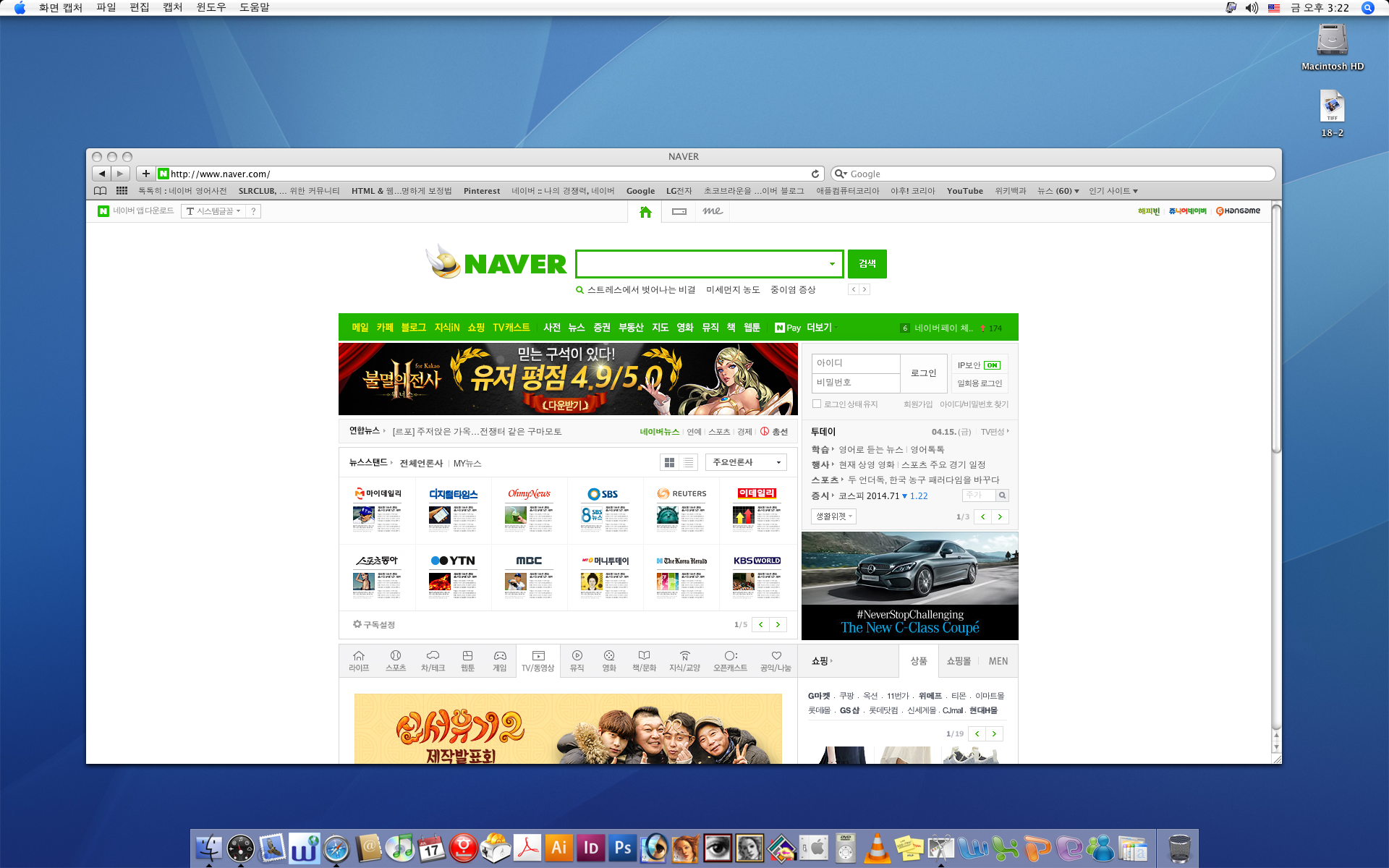 인디자인과 포토샵과 일러스트과 아크로뱃프로등 설치됨