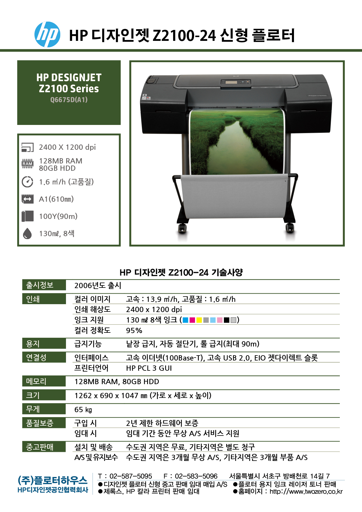 HP 중고플로터 DSJ Z2100-24(A1)를 최저가로 판매합니다.