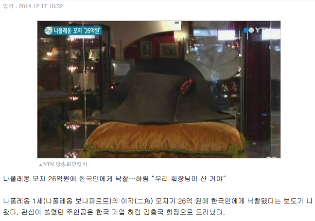 나폴레옹의 낡은 모자는 26억원^^