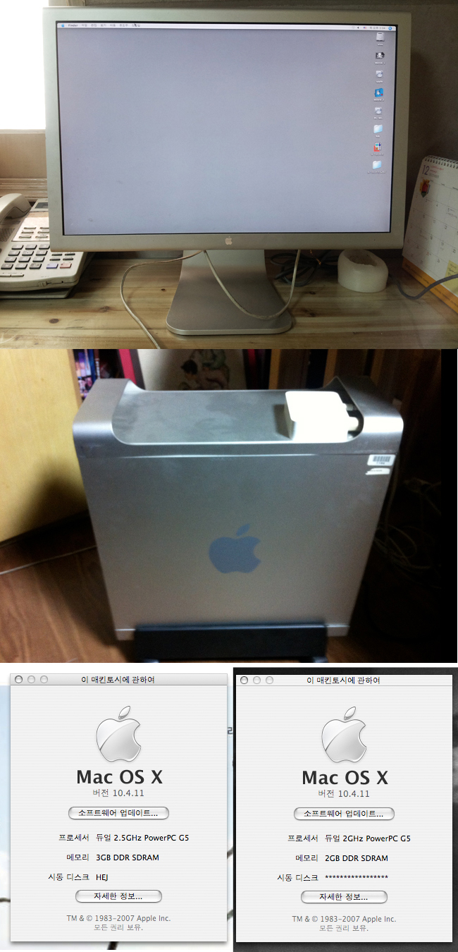* G5 2.5듀얼+200GB(내장)+애플 모니터 20인치=100만원