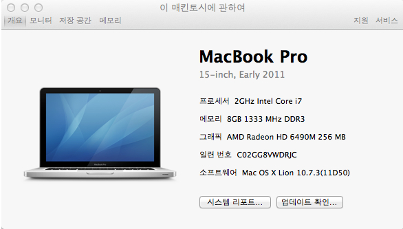 Macbook Pro 15인치, 2011년 10월 구매, 메모리 8기가