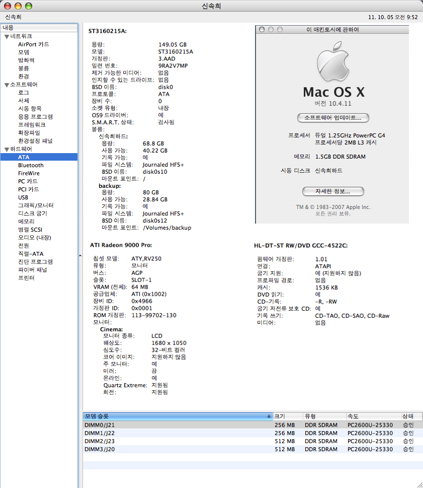 OS 10.4 타이거와 9.22 클래식으로 사용했구요. 단독부팅으로 바꿔서 사용하셔도 됩니다.