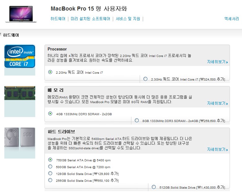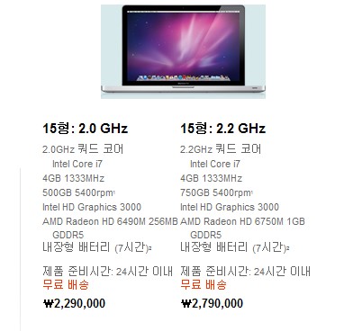 15형, 2.2GHz, 퀴터코어 i7 4G 750GB 맥북프로 박스도 안뜿은 새거 판매합니다!!