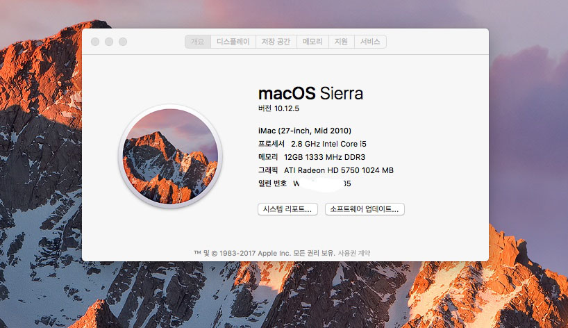 맥os 시에라와 디자인편집프로그램들 설치되어 있습니다