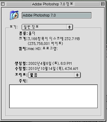 그러니 폴더를 여시고 그 안에 있는 포토샵 응용 프로그램에 대해 정보입수를 하고, 그 후에 '사용메모리'에 대해 조정을 하시기 바랍니다.