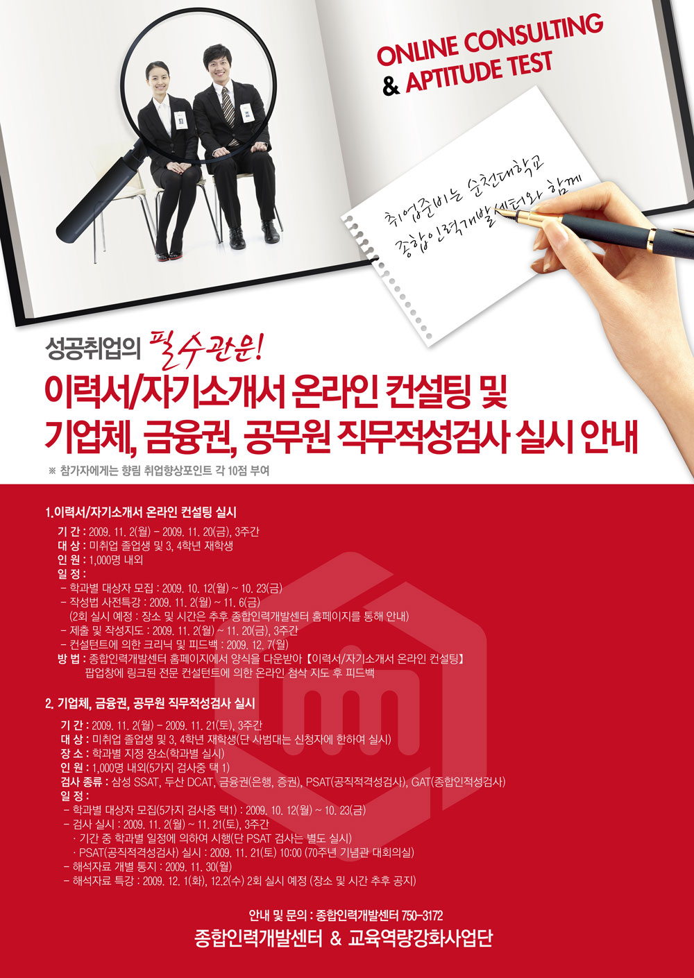 순천대학교 종합인력개발센터 포스터
