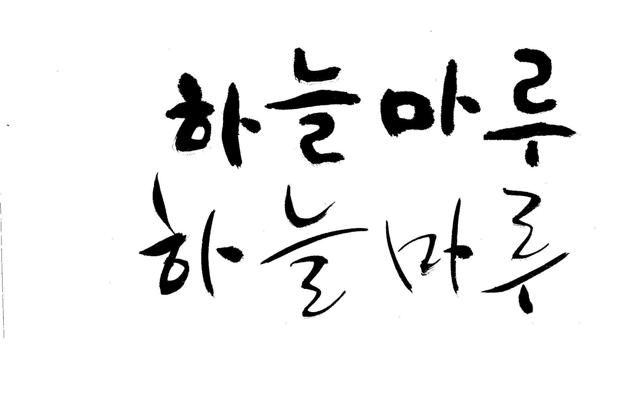 캘리 좀 부탁드립니다. 김철호 일반 0 9028 2009.02.16 23:14 > > "하늘마루" 라는 이름인데, 노인복지시설에서 발행하는 소식지 제목입니다. > 기존 서체와는 다른 고유한 이름을 정하고 싶어 이렇게 부탁드립니다. >