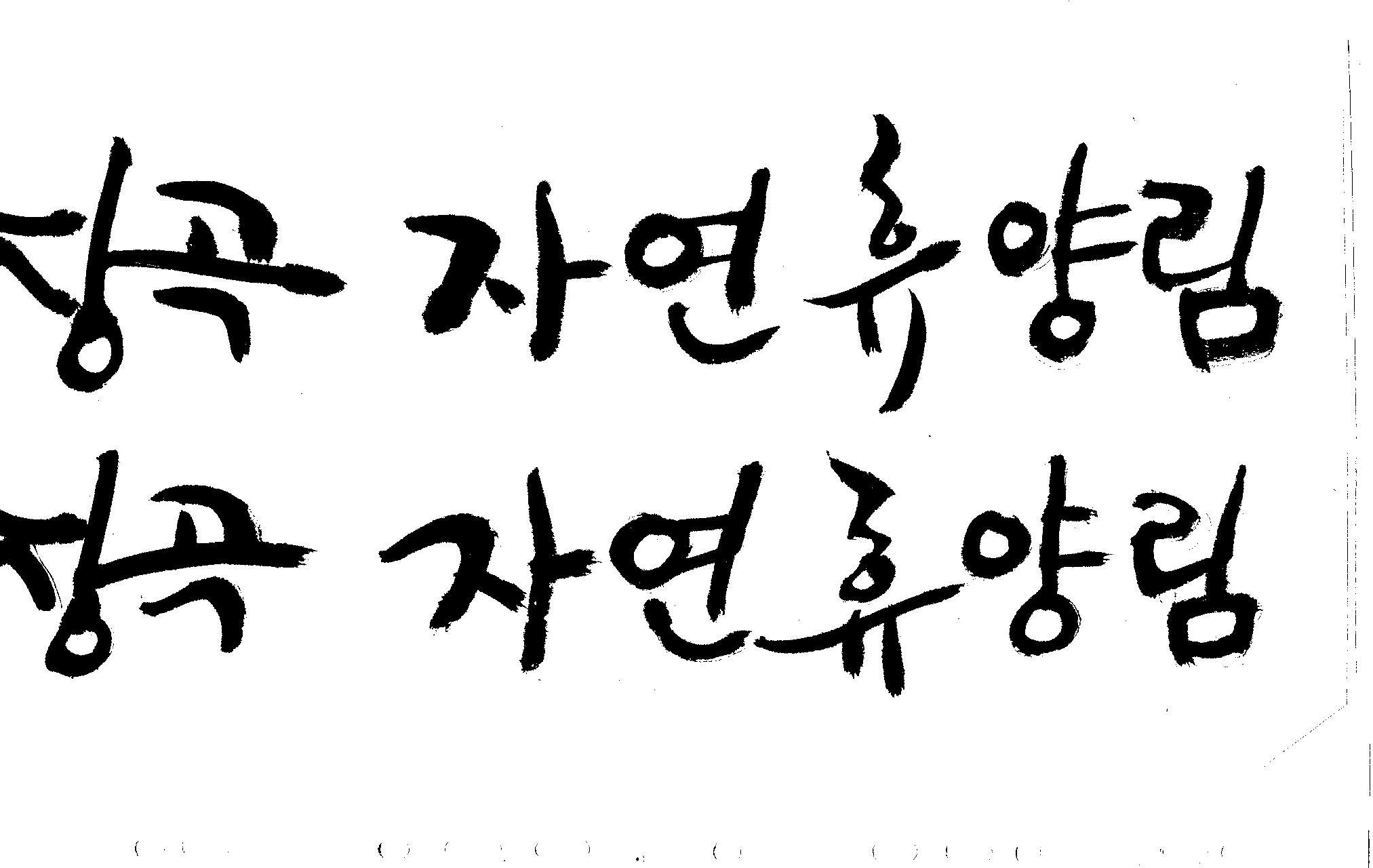 캘리 부탁드려요~ 김철호 일반 1 10072 2008.12.25 23:24 > > 홈페이지 시안 작업중인데. > 메인으로 들어가는 폰트를 명조체로 넣었는데 좀 딱딱한 느낌이 들어 > 캘리로 쓰면 느낌이 좋을것 같아서 부탁드리게 됐습니다. > [장곡 자연휴양림] 이구요. > 홈페이지 시안으로 채택되면 결과물 보여드릴께요^^ > 추운겨울 감기 조심하시고 > 즐거운 크리스마스 되세요! > 감사합니다.. 유용하게 쓰시길... 글자수가 많아서 스캔이 잘렸네요.. 헷갈려서 중복되게 올라간것이 있을것인데.. 맞춰서 편집하세요..