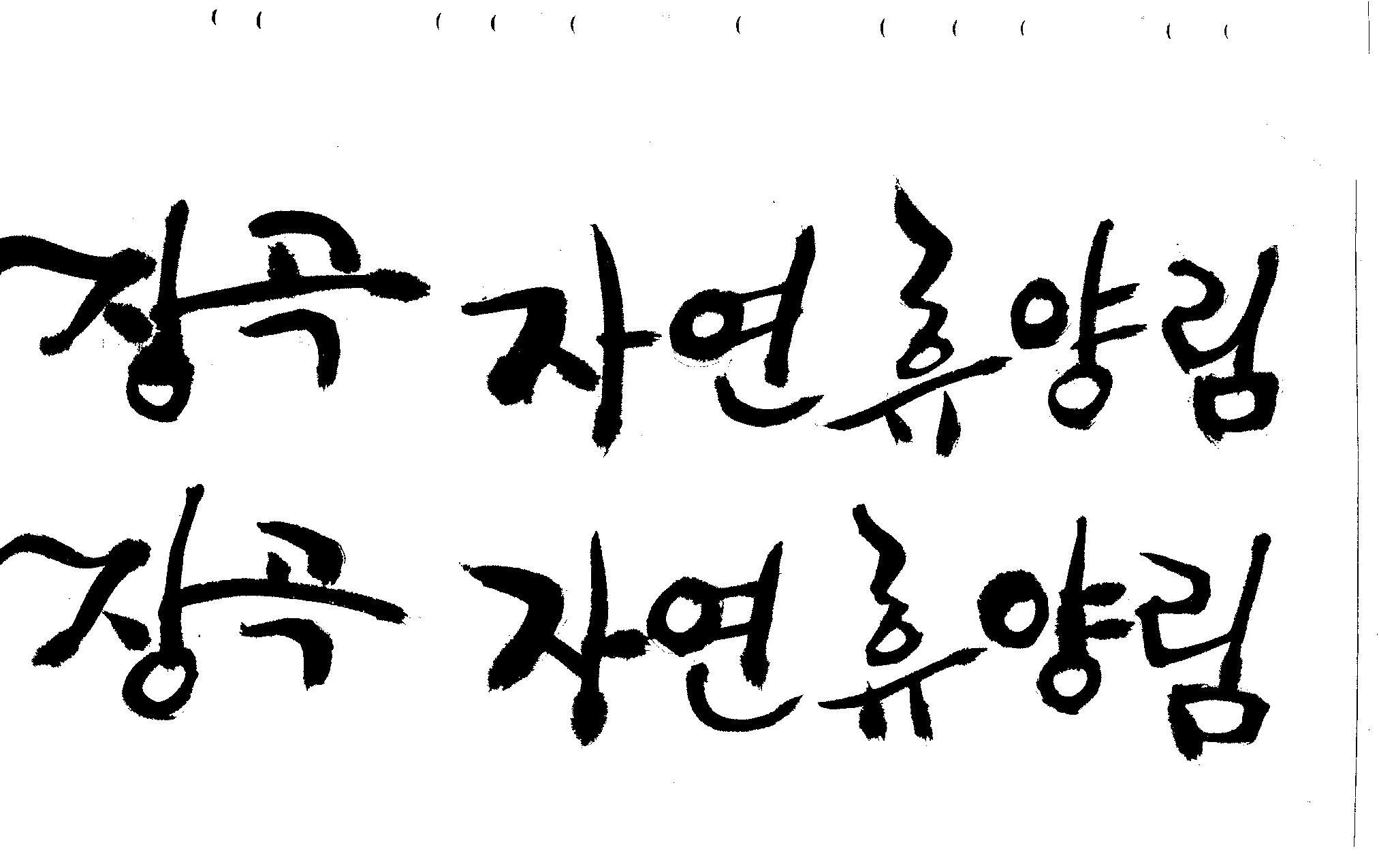 캘리 부탁드려요~ 김철호 일반 0 8727 2008.12.25 23:25 > > > > > 홈페이지 시안 작업중인데. > > 메인으로 들어가는 폰트를 명조체로 넣었는데 좀 딱딱한 느낌이 들어 > > 캘리로 쓰면 느낌이 좋을것 같아서 부탁드리게 됐습니다. > > [장곡 자연휴양림] 이구요. > > 홈페이지 시안으로 채택되면 결과물 보여드릴께요^^ > > 추운겨울 감기 조심하시고 > > 즐거운 크리스마스 되세요! > > > > 감사합니다.. > 유용하게 쓰시길... > 글자수가 많아서 스캔이 잘렸네요.. > 맞춰서 편집하세요.. >