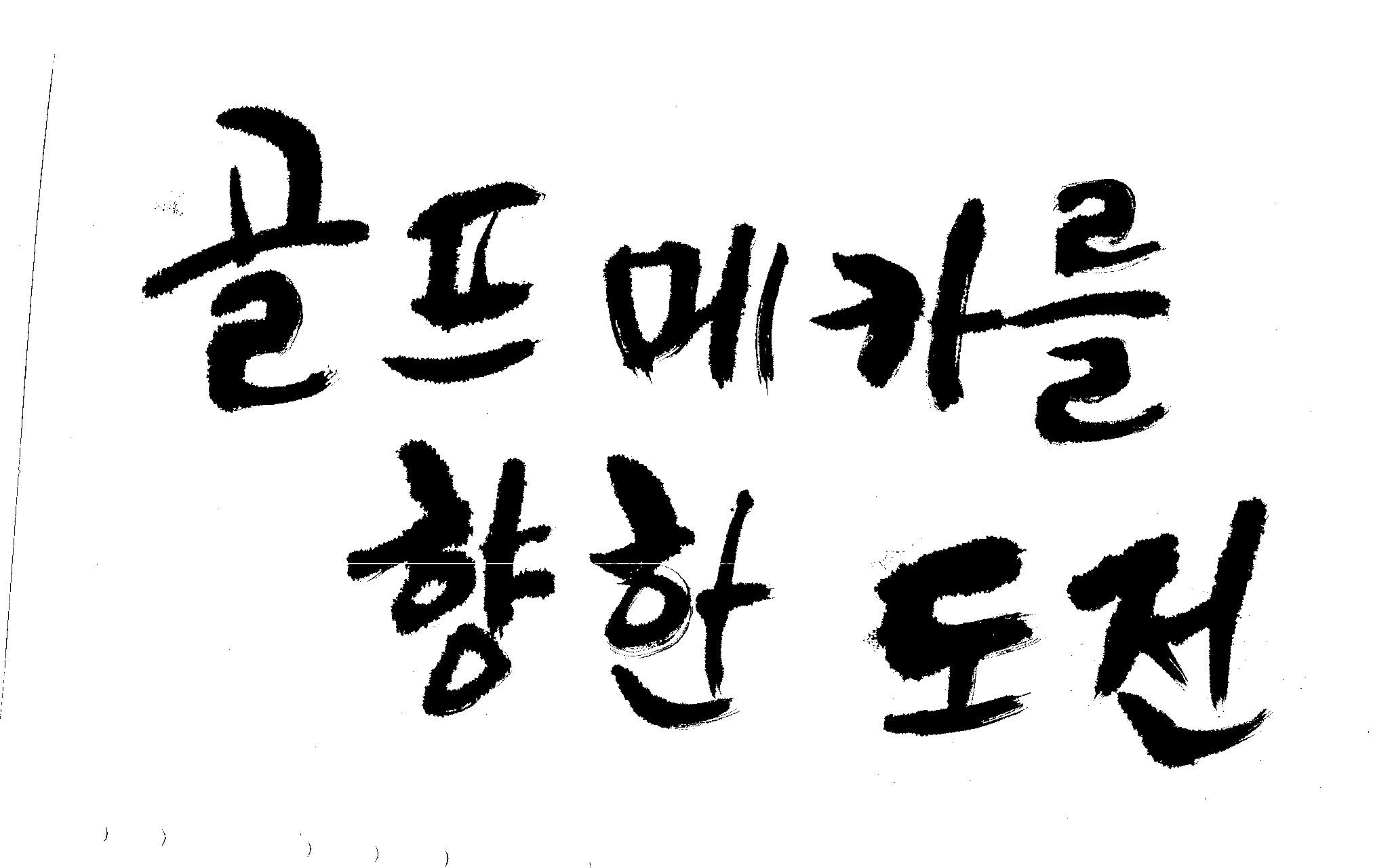 우경의 행복한 캘리세상-골프메카 김철호 일반 0 8412 2009.07.18 10:26 > > 리듬감을 최대한 살리고 ㅡ 스포츠의 운동감과 밝음 > 기교섞인 획을 배제--일반적인 느낌 > 굵기변화를 통하여 도전 낱말을 강조 > 스타일은 비슷하지만 ...한 사람이 썼으니까 ㅎㅎㅎ > 서로 다른 글꼴을 올린 것은... 비교하여 보시고... > 편집자에게 선택권을 주는 것입니다 >