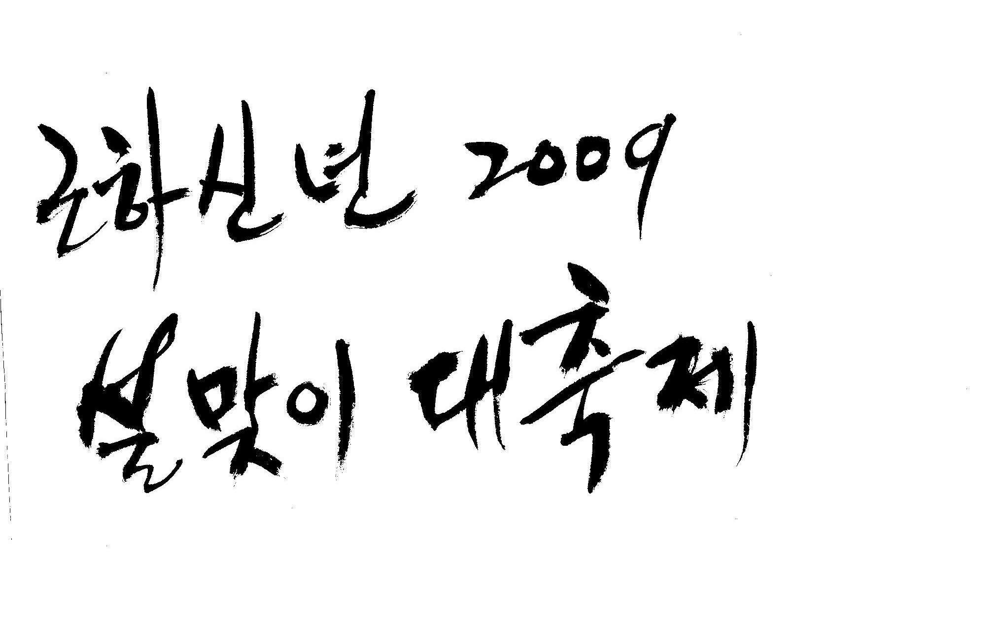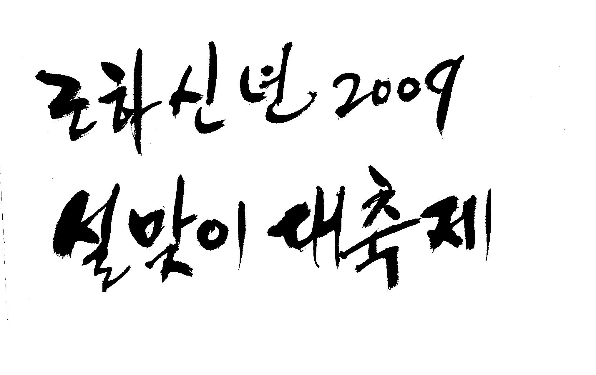 근하신년 2009 설맞이대축제 캘리 부탁드려요. 김철호 일반 3 17053 2009.01.14 10:45 > > A3 전단지 타이틀로 쓰려고 하는데요. > > ''근하신년 2009 설맞이대축제'' 캘리 부탁드립니다. > > 많은도움이 되주셔서 감사합니다. > > 유용하게 쓰세요..