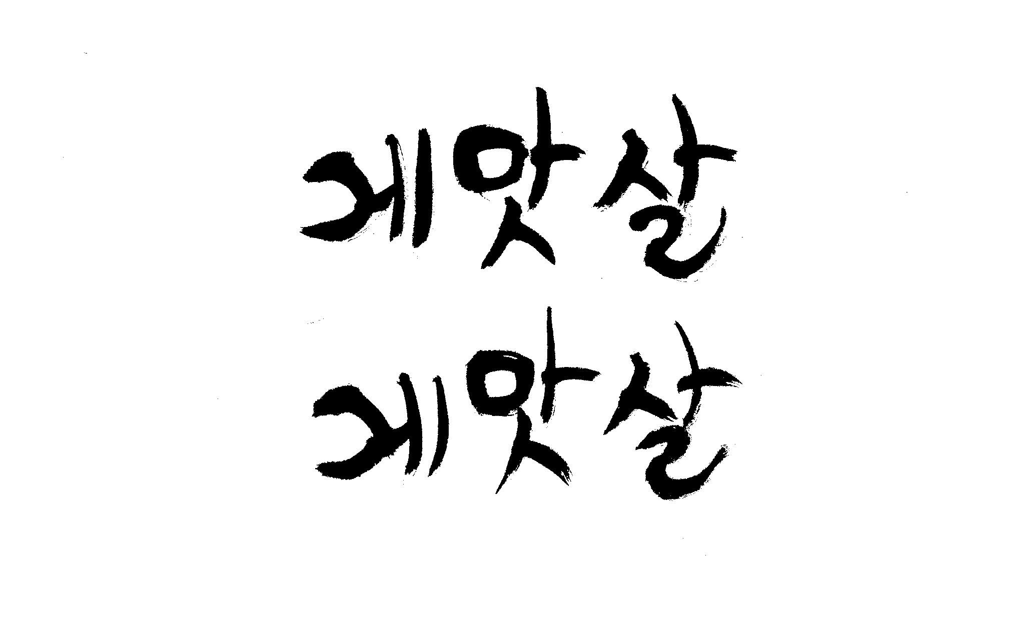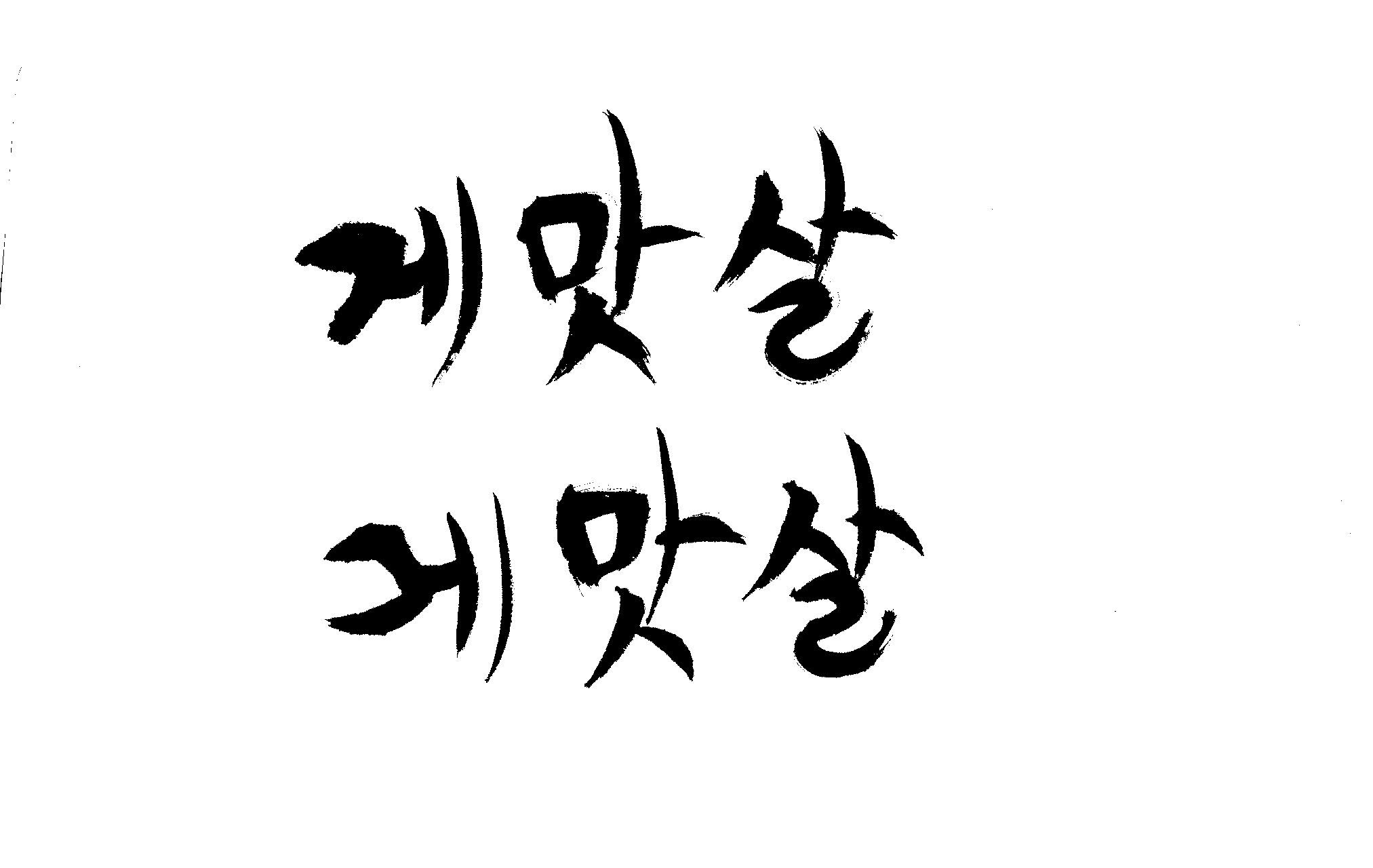 캘리 부탁드립니다. 김철호 일반 0 7021 2009.01.30 09:49 > > 제가 이리저리 써보기도 했으나 너무 이상해서 도움을 받고자 합니다. > 단어는 '게맛살' 입니다. 패키지디자인에 사용할 타이틀입니다. > 급한사항이니 부탁드립니다. 감사합니다. ^^ >