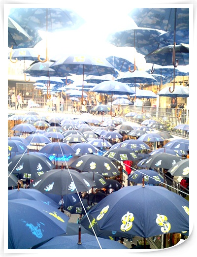 건물사이에는 우산이 잔뜩 걸려있구....