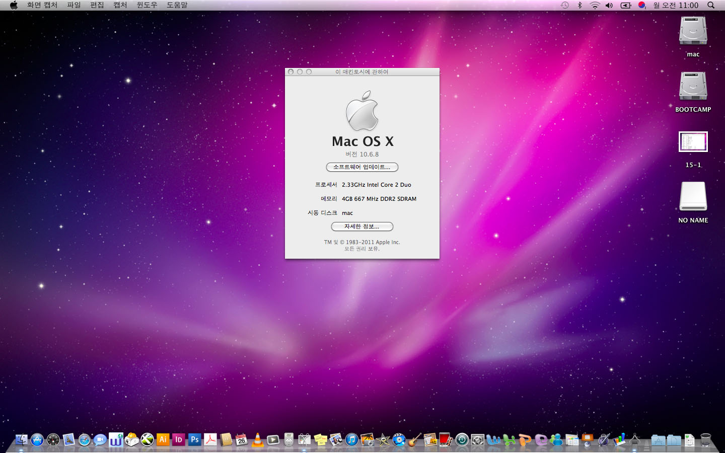 맥북프로 15인치- 맥 디자인프로그램들과 윈도우7 설치됨