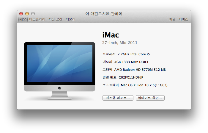 아이맥맥 27인치 mid 2011, 2.7GHZ Intel core i5