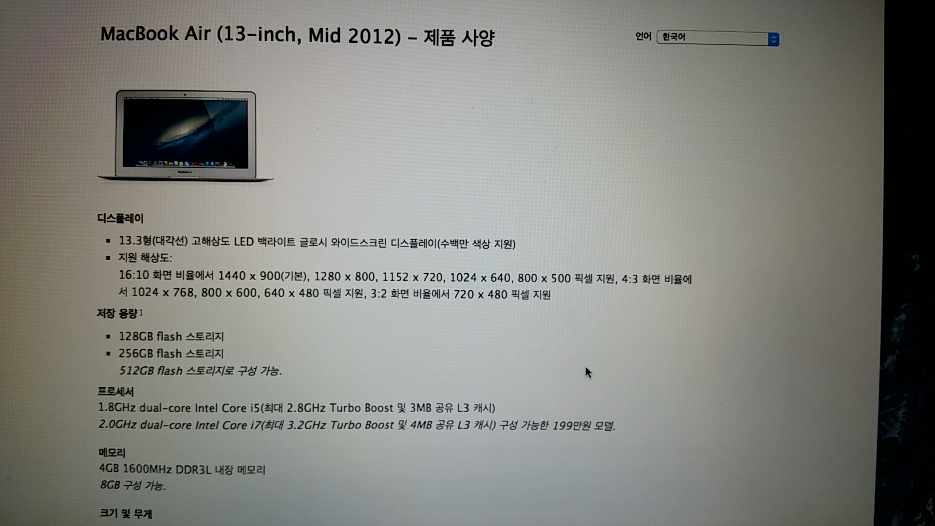 맥북에어 13인치 Mid 2012년형 집에서 인터넷 검색정도만 사용했습니다.