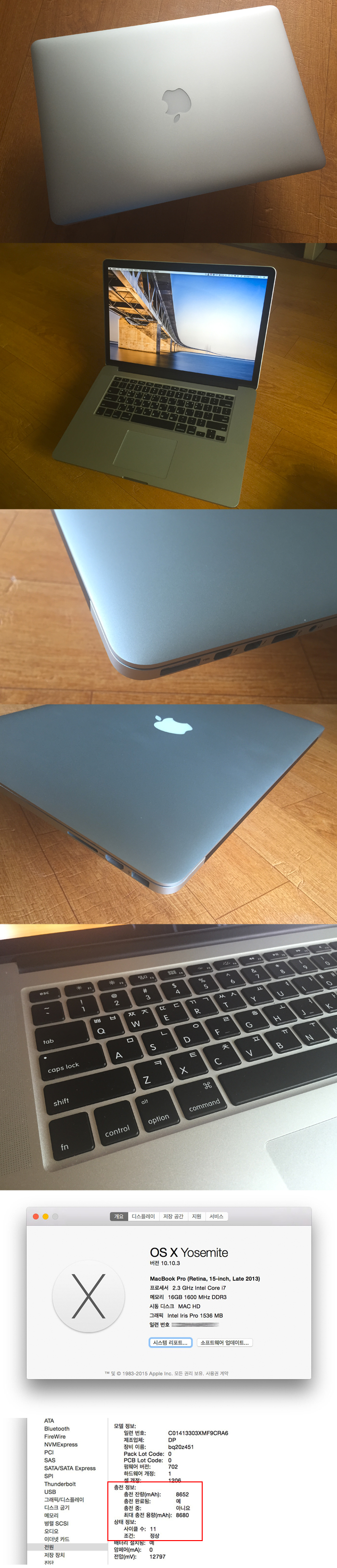 사양은 맥북프로 15인치 2013 late 고급형 사양이구요.