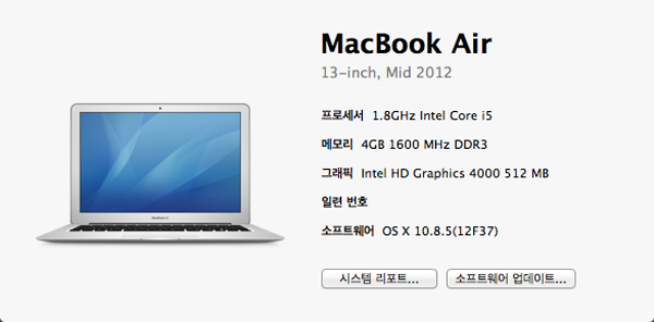 상품 정보 : MacBook Air 13-inch, Mid 2012
