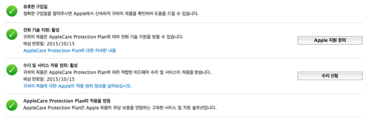 애플캐어 2015년 10월 15일까지 a/s 가능합니다