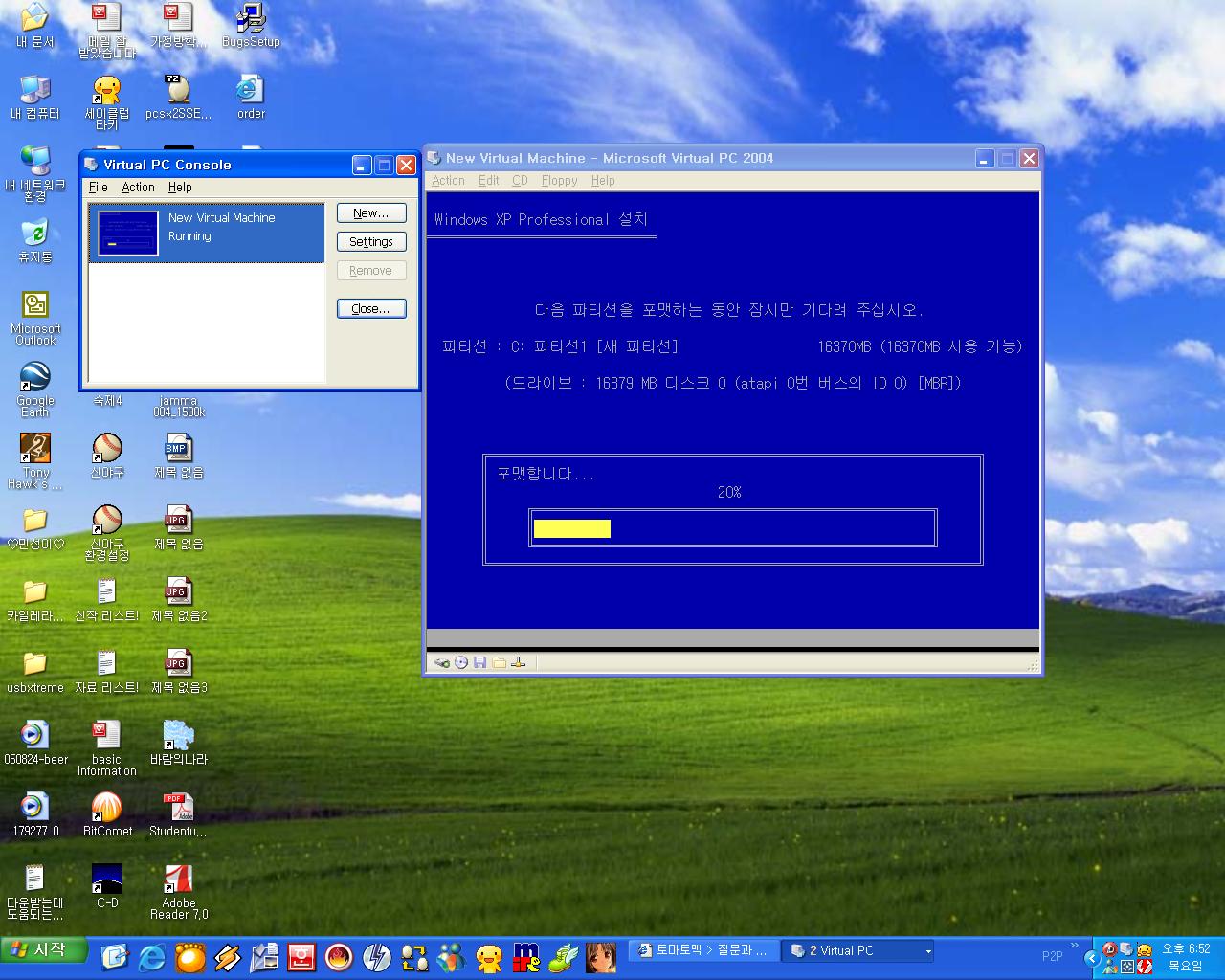 실수하지 않기위해 윈도우 XP에서 연습중입니다.