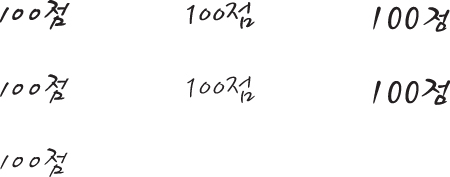 100점을 쿨재즈체, 봄날체,세종소주체로좀