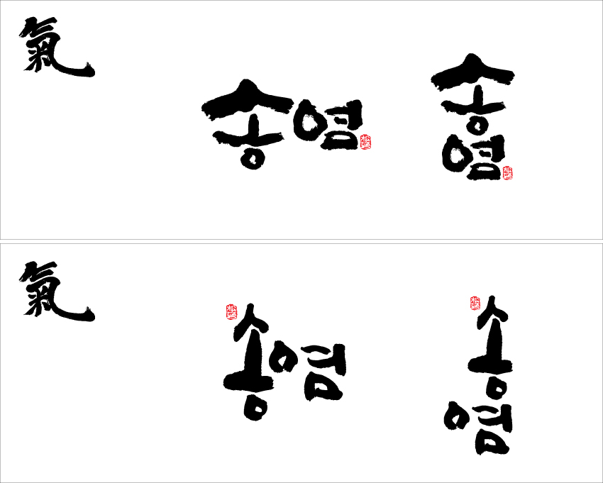 ★ 캘리좀 부탁드립니다. ★ 박현명 일반 2 8414 2010.08.19 14:57 -0001.11.30 00:00 송염.ai (0byte) + 33 하루지났는데도 아무도 안올리길래 눈치봐서 올려봅니다 ㅋ 제꺼 쓰면서 같이 써봤네요. 레이아웃을 같이해야되는지 따로해야되는지 몰라서... 따로따로 써서 올립니다. 알아서 조합하시길...