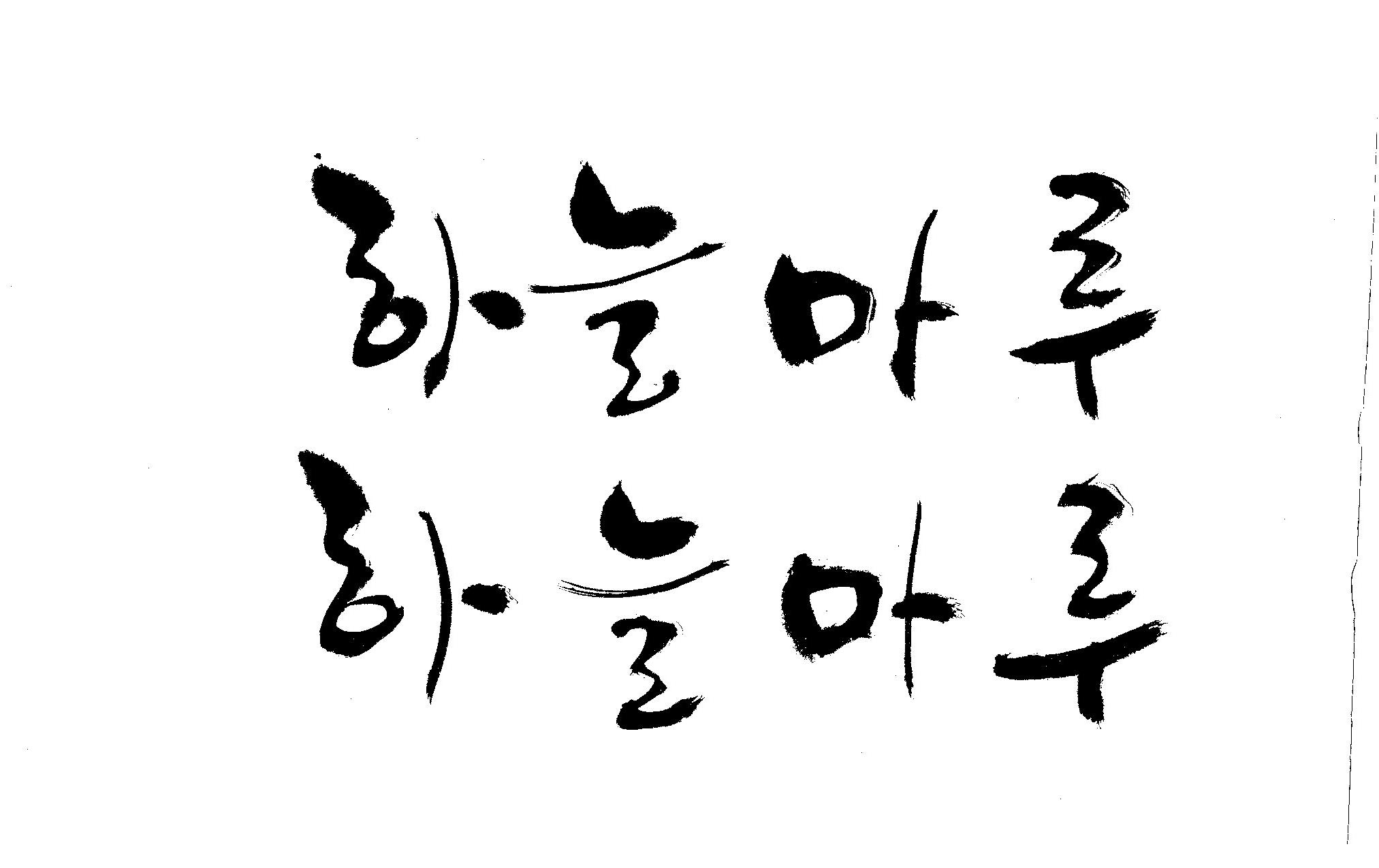 캘리 좀 부탁드립니다. 김철호 일반 0 8590 2009.02.16 23:14 > > "하늘마루" 라는 이름인데, 노인복지시설에서 발행하는 소식지 제목입니다. > 기존 서체와는 다른 고유한 이름을 정하고 싶어 이렇게 부탁드립니다. >