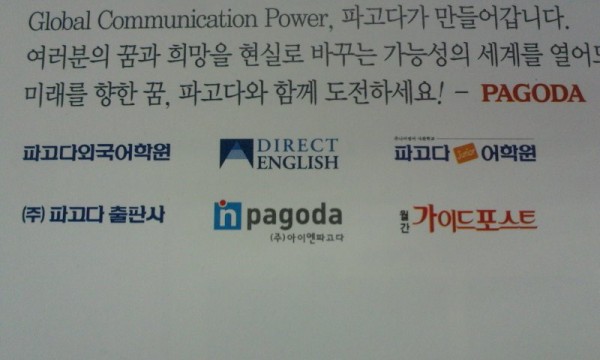 [급]파고다관련 로고소스좀 부탁 드려요 티엔미 0 7039 2010.10.27 18:34 파고다외국어학원 DIRECT ENGLISH파고다주니어어학원(주)파고다출판사NPAGODA(주)와이엔파고다월간 가이드포스트